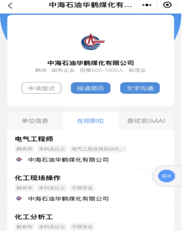 本次线上视频招聘会受到了用人单位积极响应,吸引了化工、化学、生物、食品行业333个优质企业参加,其中世界500强、中国100强占比40%,国有企业和上市公司有100余家。中海石油华鹤煤化有限公司、中国化学工程第四建设有限公司、正大食品企业(上海)有限公司、湖北兴发化工集团股份有限公司等企业携1198个招聘岗位参会,预期招聘16684人次,来自本校和各兄弟高校毕业生参与人数达到2302人次,网络浏览量达19366人次,平均每人投递简历4-8份,平均获得企业面试邀约2-4次。据统计,本次网络招聘活动中,通过视频面试和简历筛选达成意向的有1040人,现场录用人数达到49人。