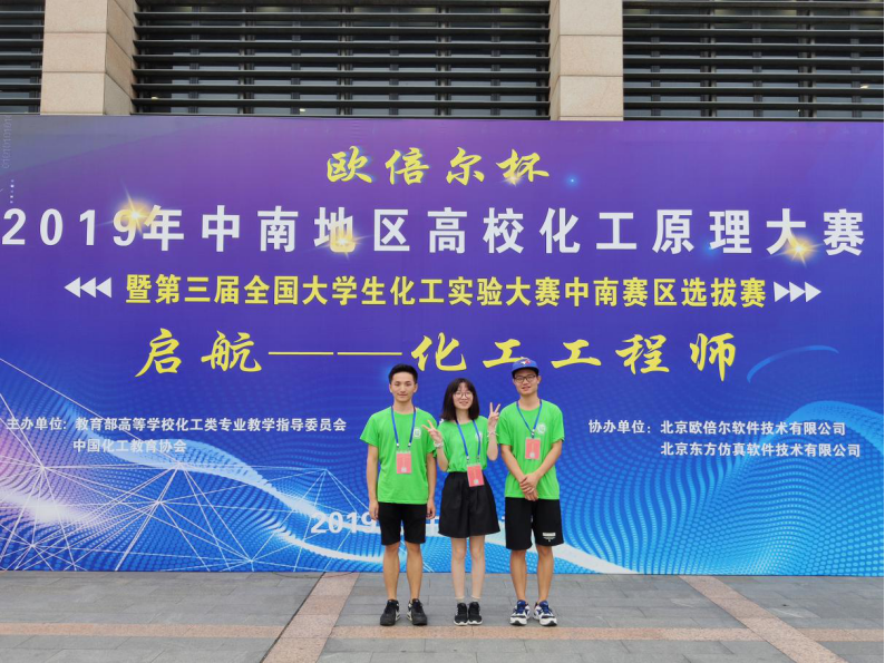 2016级化学工程与工艺专业本科生鲁思汝(女)、肖诩桓(男)和官程(男)三位同学代表学校参加中南赛区选拔赛。在王雪梅书记和喻发全院长的鼓励下,化工原理课程发展中心老师精诚团结合作,为参赛同学们在理论、仿真和实验环节制定了详细的提升学习方案。鲁思汝、肖诩桓和官程三位同学凭借扎实的化工专业基础和稳定的发挥,在强手如林的竞赛中脱颖而出,荣获中南赛区特等奖,并将代表中南赛区参加8月份在大连理工大学举行的全国总决赛。