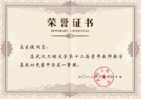 以来,他一直坚守在教学和科研的第一线,深受学生喜爱,并获伦理电影老师的一致认可。2017年高家俊全校评教位列前100名;2018年,荣获学校青年教师教学基本功竞赛一等奖,获批国家自然科学基金青年基金项目1项、湖北省教育厅科研计划项目1项,指导本科生获批校长基金项目1项,且以第一作者身份,在化工领域Top期刊Fuel上发表论文1篇,申请发明专利5项;2019年,高家俊获得伦理电影