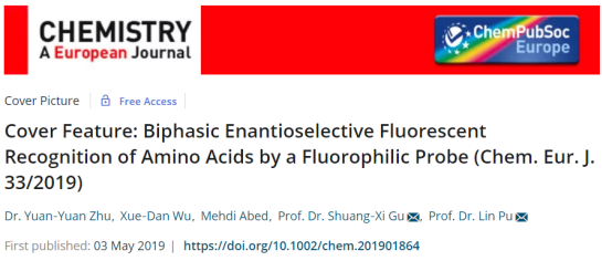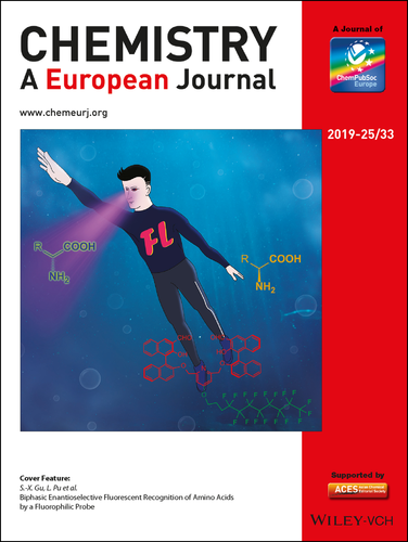 此研究成果前期以“Biphasic Enantioselective Fluorescent Recognition of Amino Acids by a Fluorophilic Probe”为标题、以full paper的形式发表在化学领域权威期刊《欧洲化学》(Chemistry-A European Journal)上()。该论文入选《欧洲化学》热点论文(hot paper),并被《欧洲化学》作为封面特色文章(cover feature)进行了介绍()。论文的共同通讯作者为伦理电影