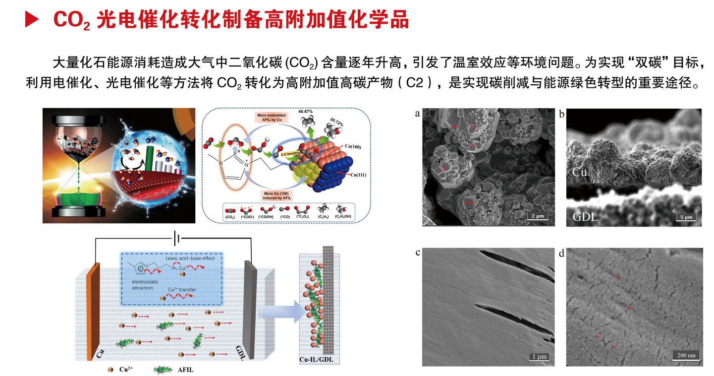 团队以“碳达峰碳中和”的国家重大需求为导向,充分结合湖北省磷资源优势,发展磷系功能化的绿碳材料,应用于CO2捕集与低质烃纯化技术、CO2光电热催化转化技术等方面的研究工作,原创新提出高效碳捕集与转化材料设计新思路,从烟道气、沼气等工业尾气高效捕集CO2并将其在温和条件下催化转化生成生物可降解聚酯、阻燃聚氨酯等含氧化学品以及烯烃、高碳醇等碳氢化合物,开发形成CO2基聚酯温和合成与改性成型一体化技术,科学合理地实现CO2源头控制与转化全过程多元平衡。近3年,团队共承担研发课题10余项,累计进账近600余万元,获侯德榜化工科学技术青年奖,民恩泽能源化工青年奖等,在AIChE. J、Adv. Sci.、Appl. Catal. B-Environ.、Chem. Soc. Rev.发表高水平SCI学术论文30余篇,申报/授权美国专利2项、国家发明专利10余项。团队原创性开发CO2基生物可降解聚酯温和合成改性成型一体化和CO2基阻燃型非异腈酸酯聚氨酯合成工艺,产品可广泛应用于可降解塑料袋、餐具、农用地膜、建筑保温层等领域,目前正与企业开展中试示范。研究方向如下: